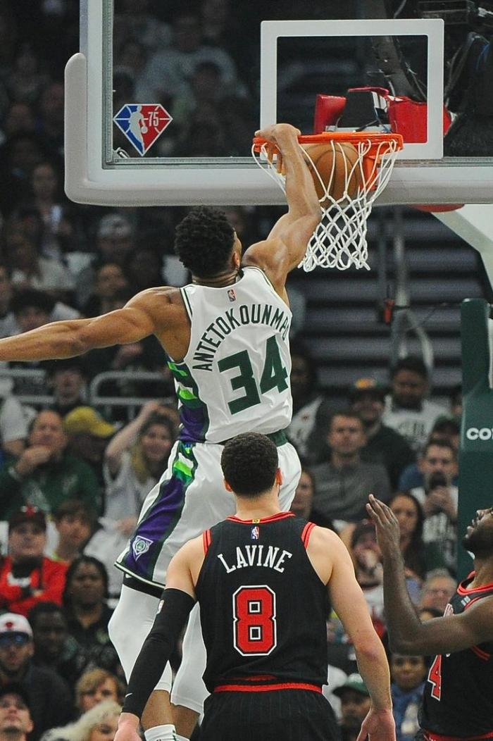 下半场,雄鹿第三节疯狂反扑,字母哥单节12分,禁区大帽德罗赞和肆虐禁区暴扣,米德尔顿单节投进4记三分,反观公牛,德罗赞大秀中投杀招,单节9中6轰下14分,第三节最后一攻,德罗赞外线大帽字母哥,三节战罢,公牛领先7分。
