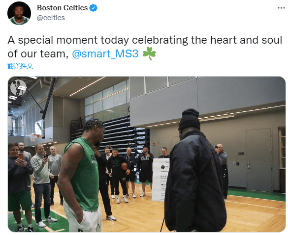 加里-佩顿亲自为斯玛特颁发DPOY奖项,斯玛特赤膊领奖并且发表获奖感言,凯尔特人众球员为他鼓掌、欢呼以及泼水庆祝;凯尔特人官方晒照庆祝,并且把头像换成了斯玛特的头像。