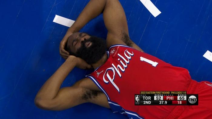 总分2-0!哈登捂着颈部倒地险受伤,14分3断2帽解锁盖帽新技能