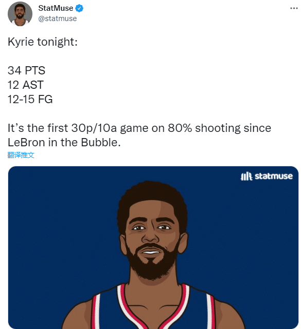 本场比赛,在斋月禁食期间,欧文仍打出疯狂一战,前12次出手全都命中,各种不讲理漂移跳投,外线三分也是稳准狠;虽然末节三次尝试三分都打铁不中,但关键时刻助攻队友,生死时刻连续四罚命中,最终篮网稳稳拿下胜利。