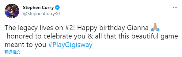 库里晒出自己身穿Gigi纪念服的帅照,发推写道:遗产永远活着,2号!Gigi生日快乐,很荣幸为你庆祝,这美丽的比赛对你来说意味着全部。