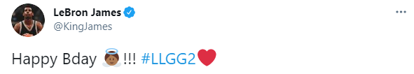 詹姆斯不仅在Ins Story上更新动态,晒出自己身穿印有“Mambacita”的纪念版服装,配文写道:生日快乐!Gigi;而且发推表达心情,希望Gigi能在另一个世界中也生日快乐。