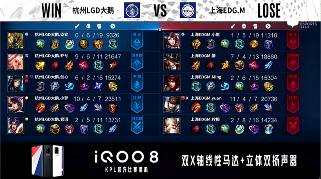 JRS直播网讯 10月27日2021年KPL秋季赛常规赛第六周第一日第二场,由杭州LGD大鹅对阵上海EDG.M,以下是本场比赛快讯。
