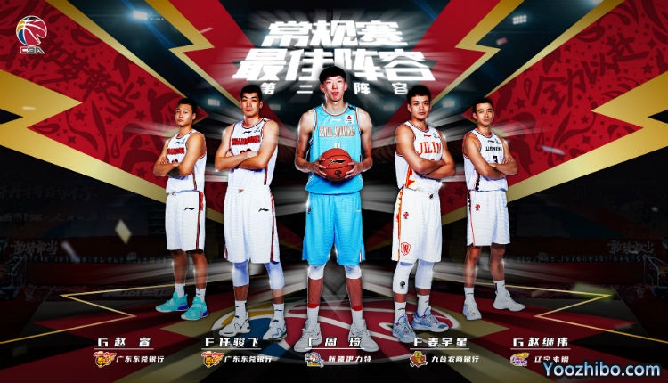 最佳阵容二阵名单:后卫:赵睿、赵继伟 前锋:姜宇星、任骏飞 中锋:周琦