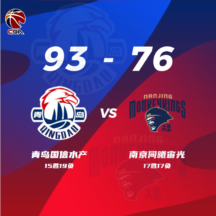 青岛(15-19):里斯24分10板2断,纪卓7分3板3助2断,王洪0分4板8助,王睿泽29分9板5助2断,杨金蒙15分3助,杰曼13分5板5助,宋文浩5分。