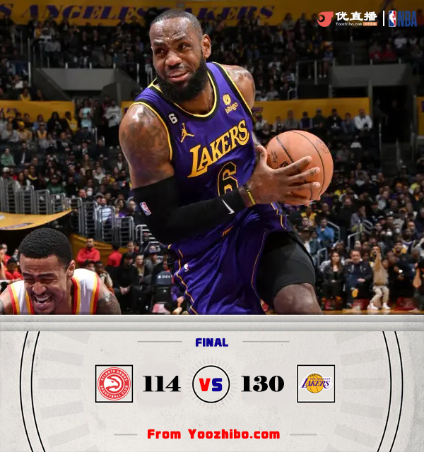 JRS直播网1月7日讯 NBA常规赛,湖人今日迎战老鹰,前者三连胜后排名西部第十二位,后者上场比赛险胜国王暂列东部第九位,此役戴维斯继续因伤缺战。比赛上来,湖人就迅速进入状态打出9-2的开局,分差此后也是逐渐拉开到了两位数,次节老鹰的命中率继续下滑,而湖人这边则攻势不减,半场就拿到70分的他们建立起21分的巨大领先优势;下半场老鹰终于有了反扑的势头,分差最小时仅剩10分,不过及时调整过来的湖人此后还是给出了回应,再次拉开分差没有给老鹰机会,最终湖人130-114轻取老鹰迎来四连胜。