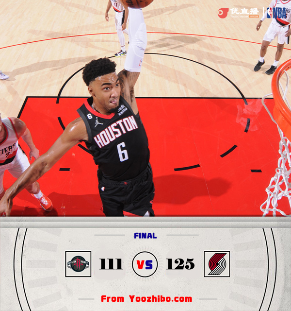 开拓者(5-1):西蒙斯30分5板7助,努尔基奇27分15板3帽,哈特9分8板4助,格兰特15分5板4助2断,夏普14分,温斯洛7分6板7助3断,约翰逊8分,利特尔3分3板3助,尤班克斯10分