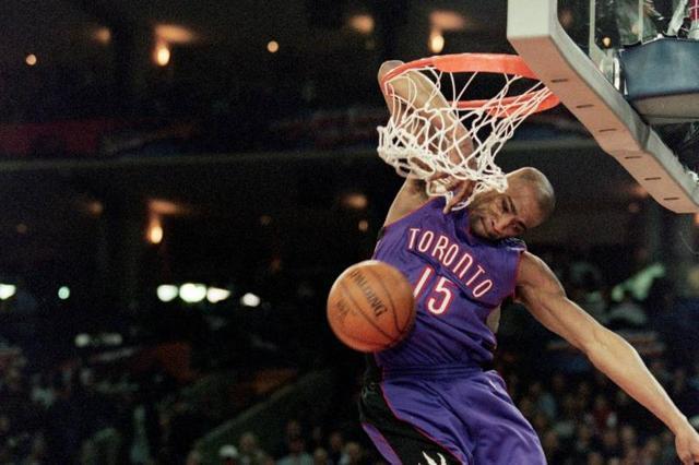 卡特最后登场,他只需要42分就能夺冠,他选择了长距离助跑后罚球线起跳扣篮。不过,卡特没有像朱利叶斯-欧文、迈克尔-乔丹、里克-巴里那样用罚球线单手扣篮,而是双手,他踏进了罚球线内一步,最终完成了双手滑翔扣篮。卡特虽然没拿到满分,但48分足以让他压过弗朗西斯夺冠。