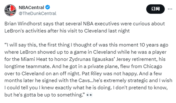 BrianWindhorst还表示:我的手机在响,我开始收到多位球队经理给我发我自己的表情包问,‘克利夫兰在发生什么?’因为他们在问,‘他这是干什么呢?’当这一幕发生时,我首先想到的事情就是10年前,勒布朗回来参加伊尔戈斯卡斯的球衣退役仪式。当时他还是热火球员,在芝加哥有一晚的休息时间,他为此飞到了克利夫兰,几个月后,他与骑士签约。