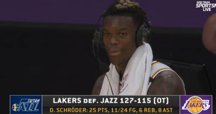 一场大胜,让湖人众将心情大好!本场25分6板8助的施罗德赛后放豪言“在他(詹姆斯)复出之前,我需要打得更有侵略性,努力找到弱侧的空位三分机会与空位灌篮的机会,我认为我们今天打得很不错。当AD(安东尼-戴维斯)和勒布朗回归后,场面会非常可怕的,因为他为篮筐带来太多压力。所以你要将之利用为一项优势。”