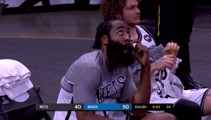 哈登4犯引争议!篮网挑战失败,哈登摊手找裁判理论+欧文抱头太无奈
