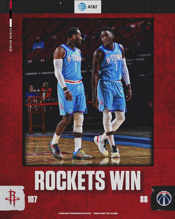 火箭107-88力克奇才 沃尔24+5 比尔33+5