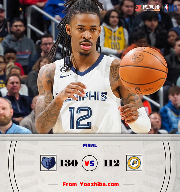 JRS直播网1月15日讯 NBA常规赛继续进行,步行者主场迎战灰熊,步行者最近2连败,目前23胜20负排在东部第8位,而灰熊则是豪取8连胜,28胜13负高居西部次席,本场比赛灰熊狄龙和步行者特纳、哈利伯顿都缺阵。比赛上来灰熊当家球星莫兰特状态一般,除了一个炸裂的折叠暴扣没有运动战进球,但超强的冲击力还是带领灰熊打出小高潮建立起领先,进攻端少了两位利器的步行者显然受到影响,好在马瑟林和杜阿尔特状态都不错,但灰熊明显实力更强半场还是取得16分领先。下半场,莫兰特手感回暖带领灰熊继续拉大比分,分差一度来到20分以上,末节灰熊外线万箭齐发打出23-7的攻击波瞬间拉开30分以上的分差,比赛直接失去悬念,双方开始练兵,最终灰熊130-112轻取步行者,豪取9连胜。