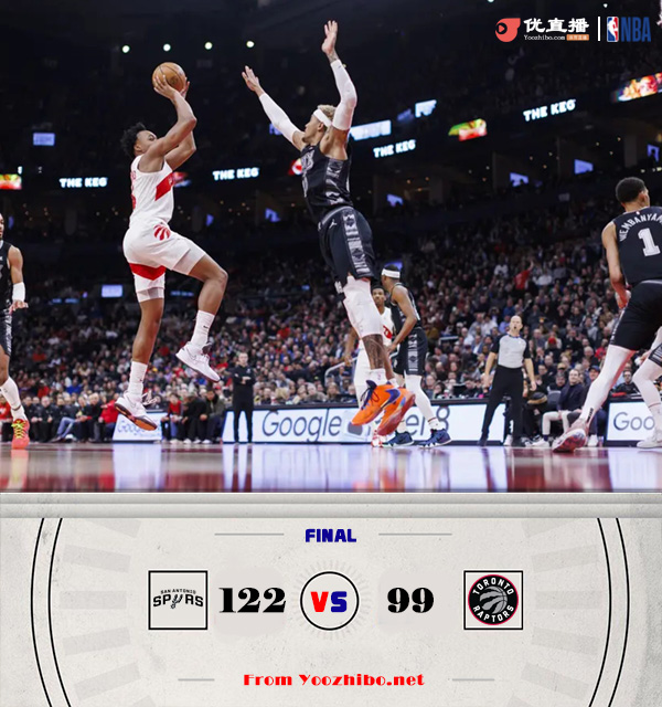 JRS直播网2月13日讯 猛龙今日坐镇主场迎战马刺,两支球队本赛季有过一次交手,当时猛龙客场7分险胜马刺。首节开局文班亚马就展现良好状态,他上来又是三分优势暴扣一人拿下8分带队取得10-0的完美开局;虽然这波优势很快就被猛龙蚕食殆尽,但整体上马刺技高一筹一直保持着领先;次节文班亚马继续火热发挥,他甚至还面对珀尔特尔完成一记高难度的隔扣,马刺在第二节开局再送10-1的攻势奠定半场17分的领先。休息归来巴雷特开局一人连拿7分尝试带队追分,但随之而来的是马刺的22-4的进攻狂潮,马刺也依靠这一节净胜11分的攻势将分差扩大至30分附近早早奠定胜局,第四节文班亚马送给迪克一记大帽拿到自己生涯第二次三双数据。最终,马刺客场大胜猛龙完成复仇。