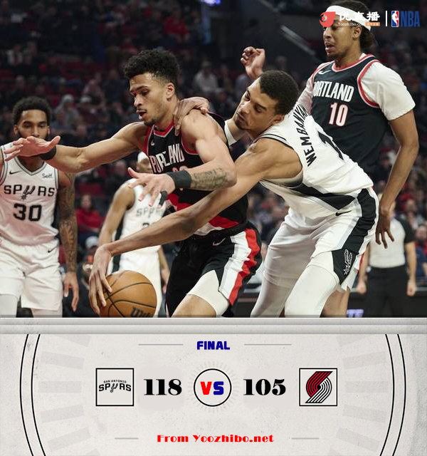 JRS直播网12月29日讯 NBA常规赛,开拓者今日迎战马刺,前者上场比赛战胜国王,后者则是遭遇五连败,此役西蒙斯、艾顿和夏普都缺战。比赛上来,开拓者在两分钟内拿到四分,但在此之后他们陷入到了长时间的得分荒,马刺轰出一波18-0的攻势直接将分差拉开到二十分以上,次节马刺的命中率出现下滑,开拓者在半场结束时将分差缩小到14分;下半场回来,开拓者一度将分差迫近到个位数,好在是马刺及时给出回应,末节分差再到二十分,开拓者没能再获得任何机会,最终马刺轻取开拓者结束五连败。