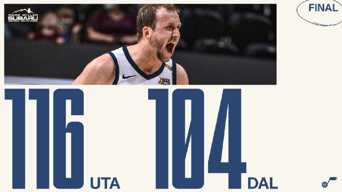 爵士(14-4):克拉克森31分7篮板、戈贝尔29分20篮板3抢断3盖帽、英格尔斯21分4篮板8助攻、康利17分6助攻2抢断、博格达诺维奇6分3篮板、奥尼尔9分4篮板3助攻、尼昂3分3篮板。