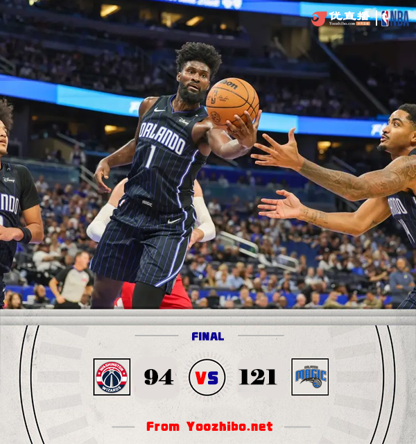 JRS直播网11月11日讯 NBA常规赛,奇才对阵魔术,奇才最近遭遇3连败,魔术上场大胜鹈鹕结束连败。开场后两队你来我往打得十分热闹,场上比分也是交替上升,瓦格纳兄弟联手发挥在第一节尾声帮助魔术取得领先。第二节上来奇才率先用三分掀起反扑一度反超比分,但魔术随后外线也用三分雨回应,并且攻势更加猛烈。下半场魔术在瓦格纳兄弟带领下攻势依旧凶猛,奇才则进攻效率不高,并且失误不少,魔术继续将分差拉大。最后一节奇才依旧没有起色,魔术将分差拉大到20分以上,最终魔术121-94轻松击败奇才取得2连胜,奇才遭遇4连败。