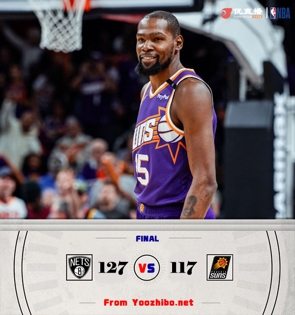 JRS直播网讯北京时间11月28日讯 NBA常规赛继续进行,太阳主场迎战篮网,赛前卡梅隆-托马斯左腿筋拉伤至少休战三周,篮网近期迎来连胜,目前8胜10负位列东部第8,此役崔永熙进入大名单,太阳三巨头携手出战,目前他们10胜7负排在西部第6位。首节开打后两队便陷入缠斗,杜兰特一上来便飚中三分,布克内外结合单节贡献11分,三巨头轮番冲击接连打进,西蒙斯联手施罗德率队回应,泰瑞斯-马丁手感滚烫连中三分,双方你来我往比分紧咬,首节结束时太阳领先3分,次节回来,泰瑞斯-马丁外线火力不减,杜兰特和布克联手取分稳住局势,半场战罢,双方战成63平。易边再战后太阳出现疲态,篮网抓住机会一波12-0拉开比分,三节结束后篮网确立12分优势,末节上来,泰瑞斯-马丁无人可挡连中三分,杜兰特连投带罚率队追分,无奈篮网总能给予回应守住胜果,最终篮网127-117力克对手迎来三连胜。