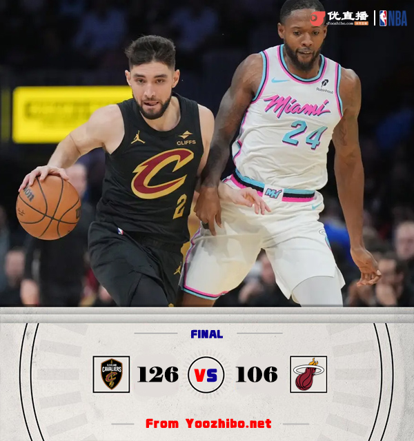 JRS直播网讯 北京时间1月30日讯 NBA常规赛,骑士客场挑战热火。骑士37胜9负高居东部第一,热火23胜22负排东部第六。一开场,双方短暂相持,骑士多点开花,热火里突外投给出回应,米切尔高效输出带队取得两位数优势,次节双方围绕10分左右分差展开拉锯战,热火后程乏力,骑士稳扎稳打不断扩大领先,半场战罢骑士59-41领先热火。下半场,海史密斯连得10分,骑士多点开花保持优势,希罗突然发力40秒连得8分,末节双方继续围绕两位数分差展开拉锯战,骑士稳扎稳打将优势保持到最后,最终,骑士126-106击败热火,客场过关。