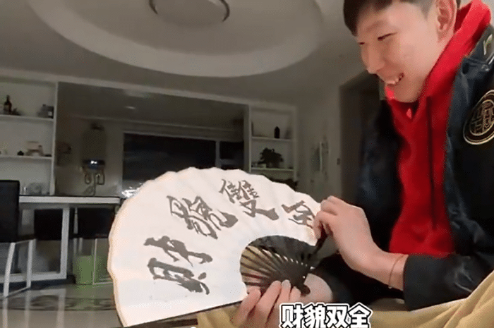 他展示了两把扇子,一把大的一把小的,面对镜头周琦非常开心表示“带点有中国特色的礼物,希望我的新队友能喜欢”扇子的确很有中国特色,大的上面用毛笔字写着才貌双全,周琦自嘲“送给队友的,我不配”而小的那把则是有几支鹤,就像中国画,有着古典的特色。