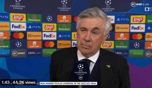 JRS直播网05月05日讯 今天凌晨,皇马在欧冠半决赛3-1击败曼城,总比分6-5实现大逆转,赛后安切洛蒂接受了媒体采访。