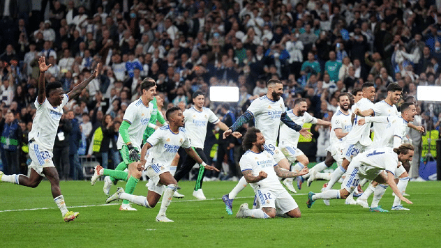 来源:JRS直播网05-05 18:25JRS直播网05月05日讯 ,皇马在欧冠半决赛次回合上演神奇逆转,面对强大的曼城,罗德里戈最后时刻连进2球,才将总分扳成5-5平拖入加时赛。加时赛本泽马点球制胜,皇马以总分6-5挺进欧冠决赛,与利物浦争夺大耳朵杯冠军。皇马不愧是欧冠之王,绝境时刻表现沉稳,球员拥有大心脏。这样皇马在赢得西班牙超级杯和西甲冠军之后,正式向着赛季三冠王荣誉发起冲击。