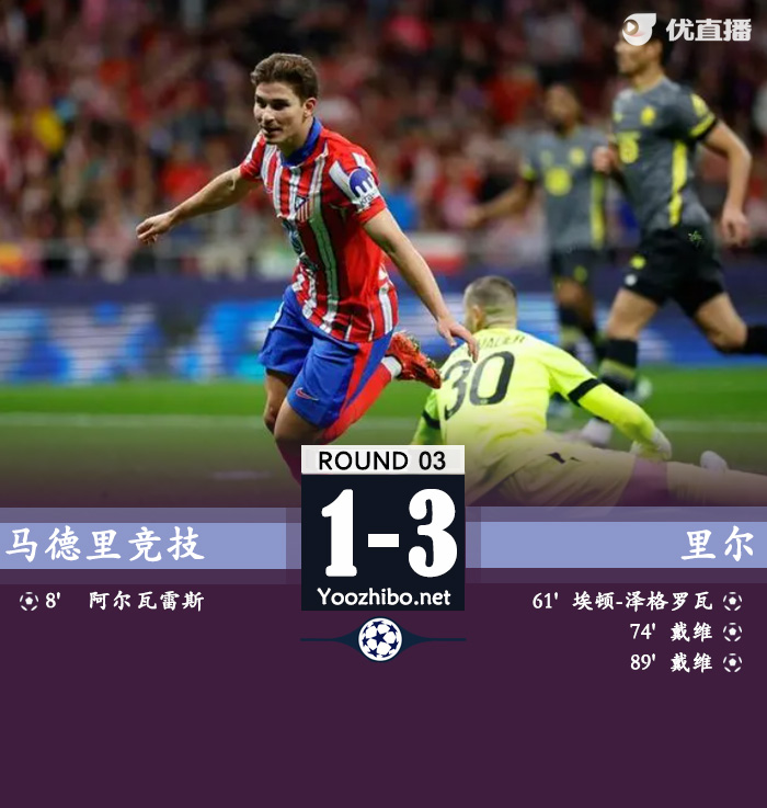 马竞1-3遭里尔逆转 小蜘蛛破门难救主&全队四失良机
