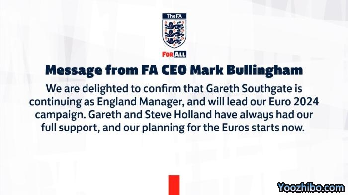 JRS直播网12月18日讯 英足总官方宣布索斯盖特留任,将带队参加2024欧洲杯!