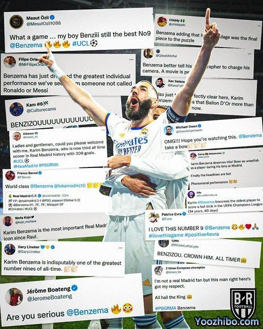 今天凌晨,皇马总比分3-2逆转巴黎,本泽马下半场帽子戏法,有如天神下凡。