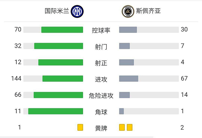 全场比赛结束,国际米兰2-0斯佩齐亚。