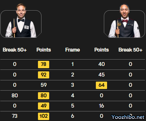 吉尔伯特终局5分险胜,47-42终结吴宜泽前进脚步